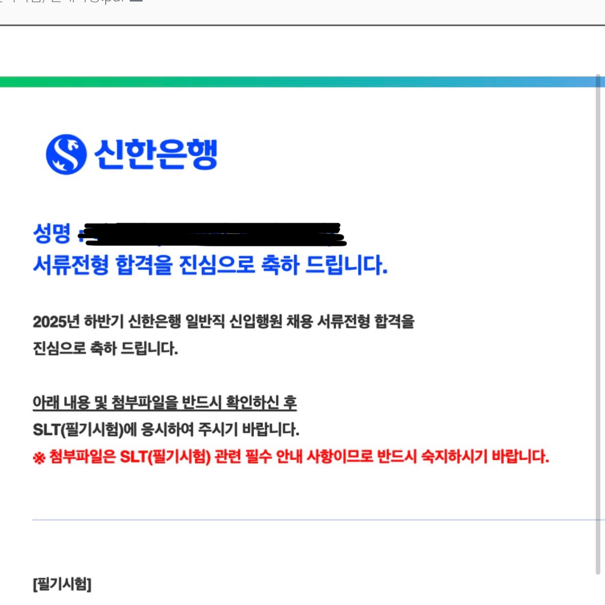 신한은행 서류합격