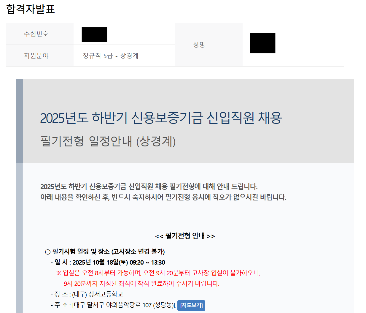 합격자 발표때 캡쳐 못해서, 필기시험 안내로 스크린샷 올립니다!