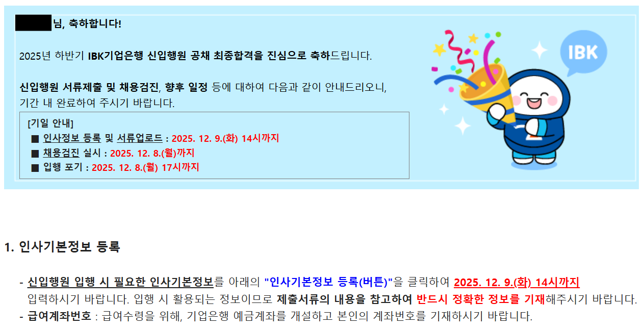IBK기업은행 최종합격 인증