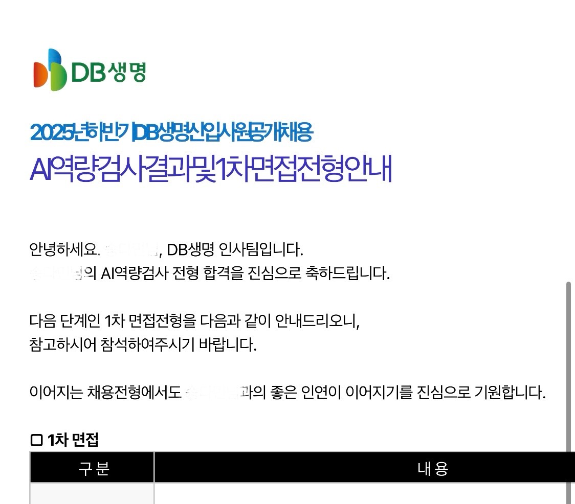 2025년 하반기 DB생명 서류 및 AI 역량검사 합격