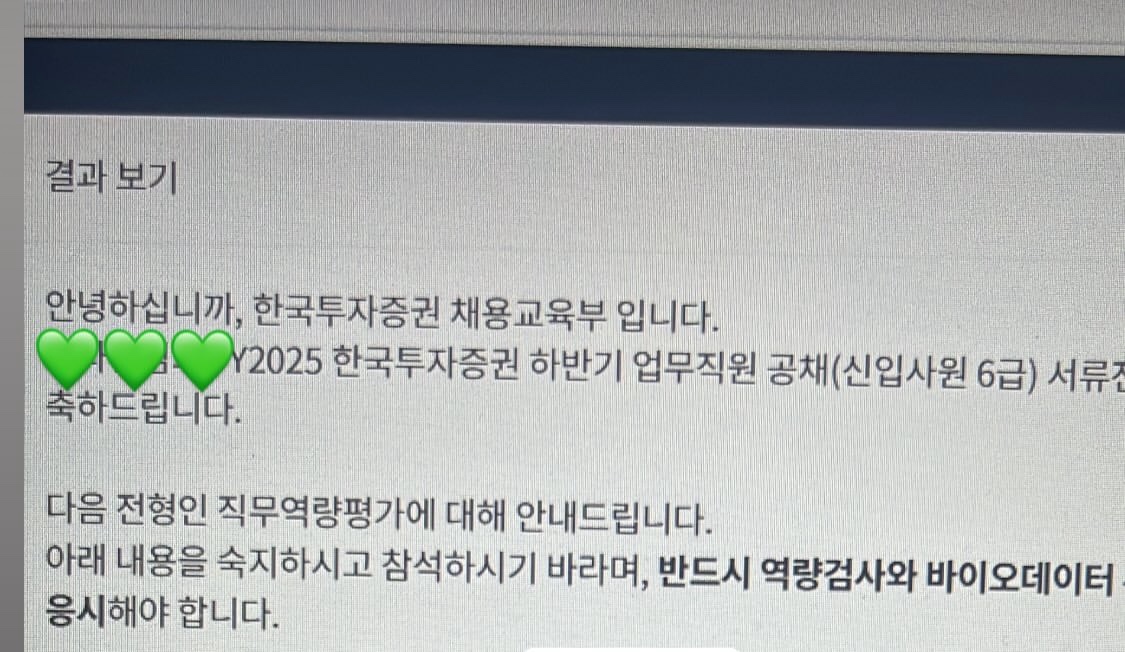 2025 하반기 한국투자증권 6급 서류합격