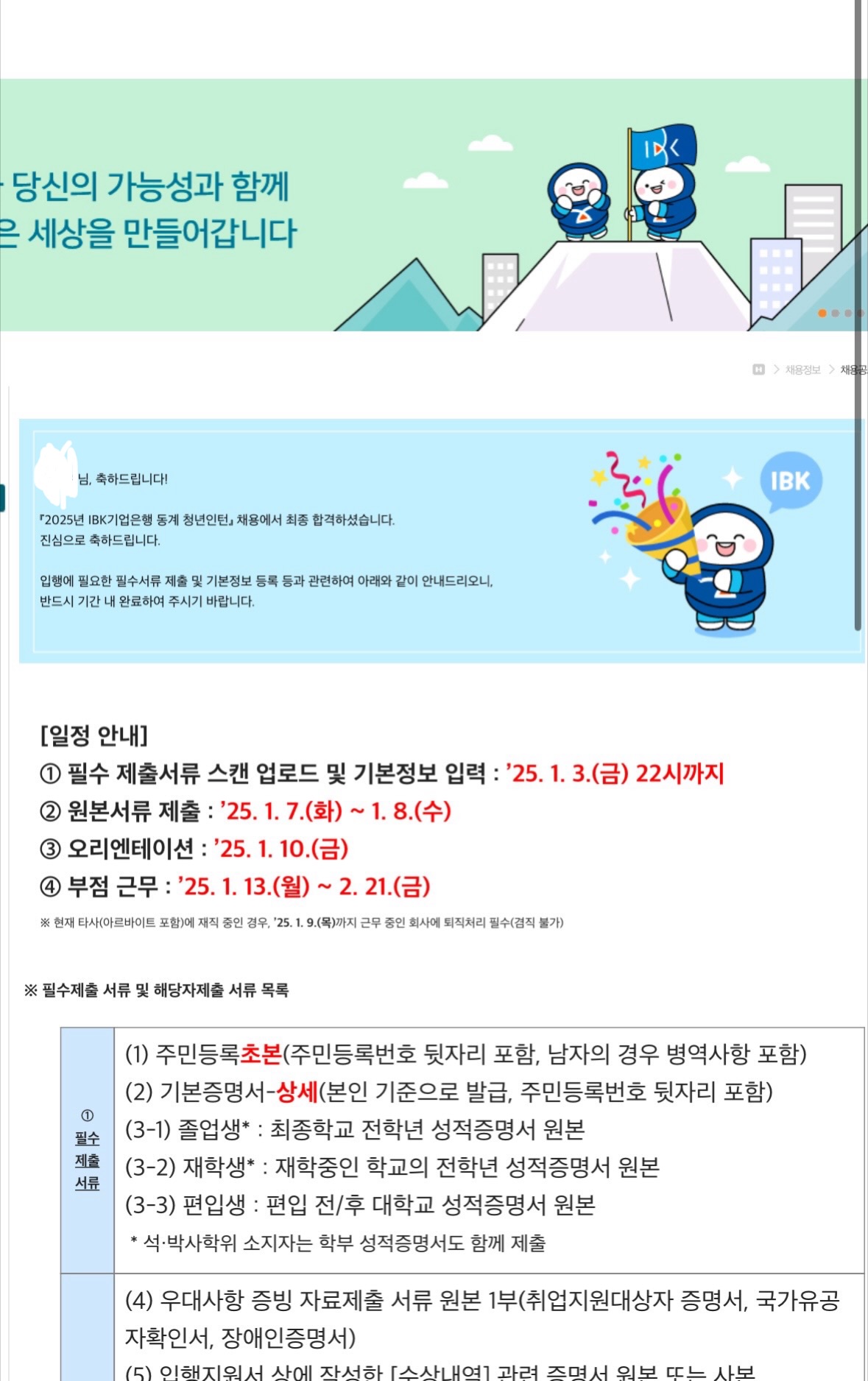 25년 동계 기업은행 청년인턴