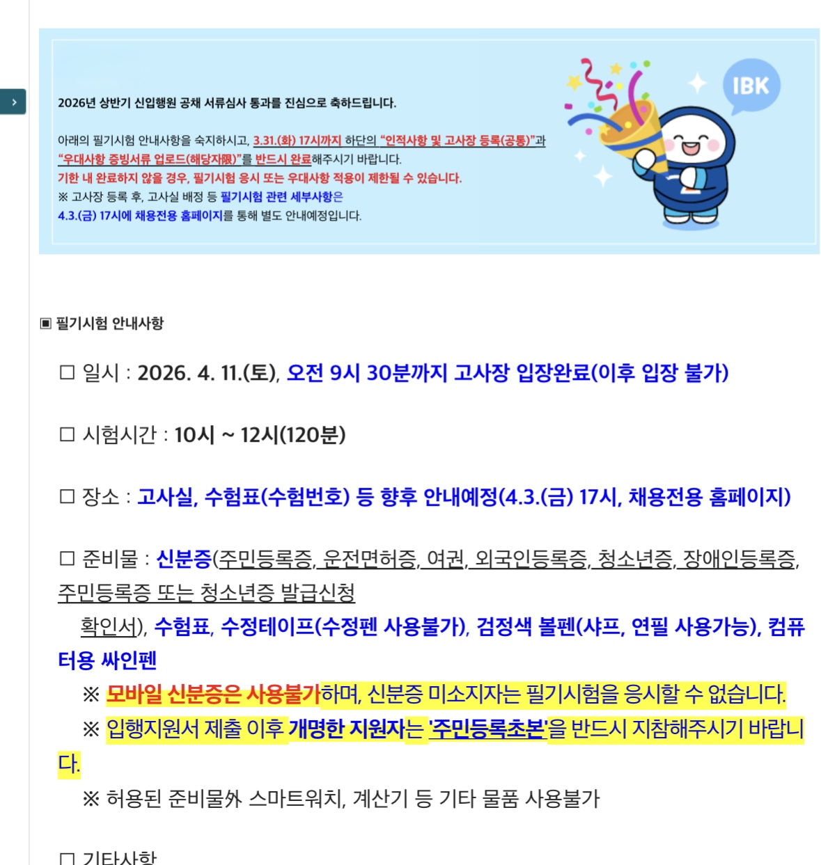 기업은행 서류는 적부이지만 면접가서 정말 중요하기 때문에