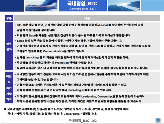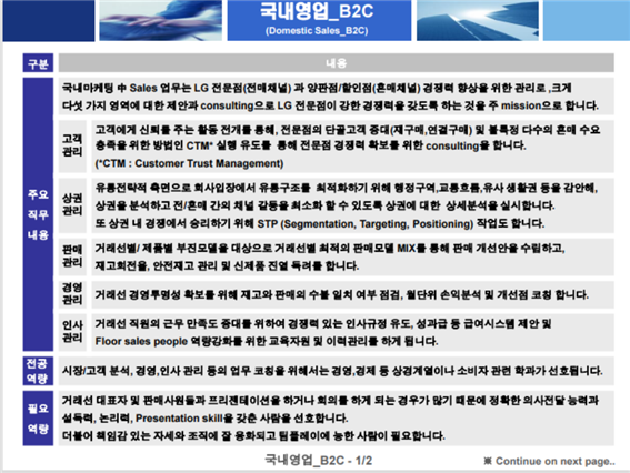 먼저 B2C영업은 LG 베스트샵, 대형유통, 온라인, 영업관리와 같은
