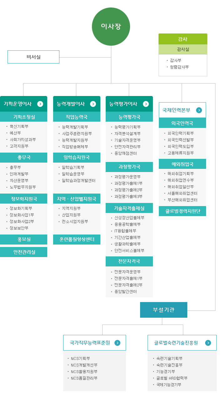 ‘능력평가이사 소관’인 능력평가국, 과정평가국, 기술자격출제실, 전문자격국