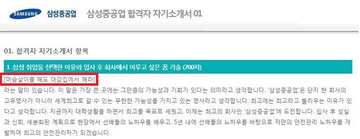 (여담이지만...이게 '합격자소서'라고 대학교 이름을 떡하니 첨부하여 나와 있습니다 ;;; 대학 이름은 삭제했습니다.)
