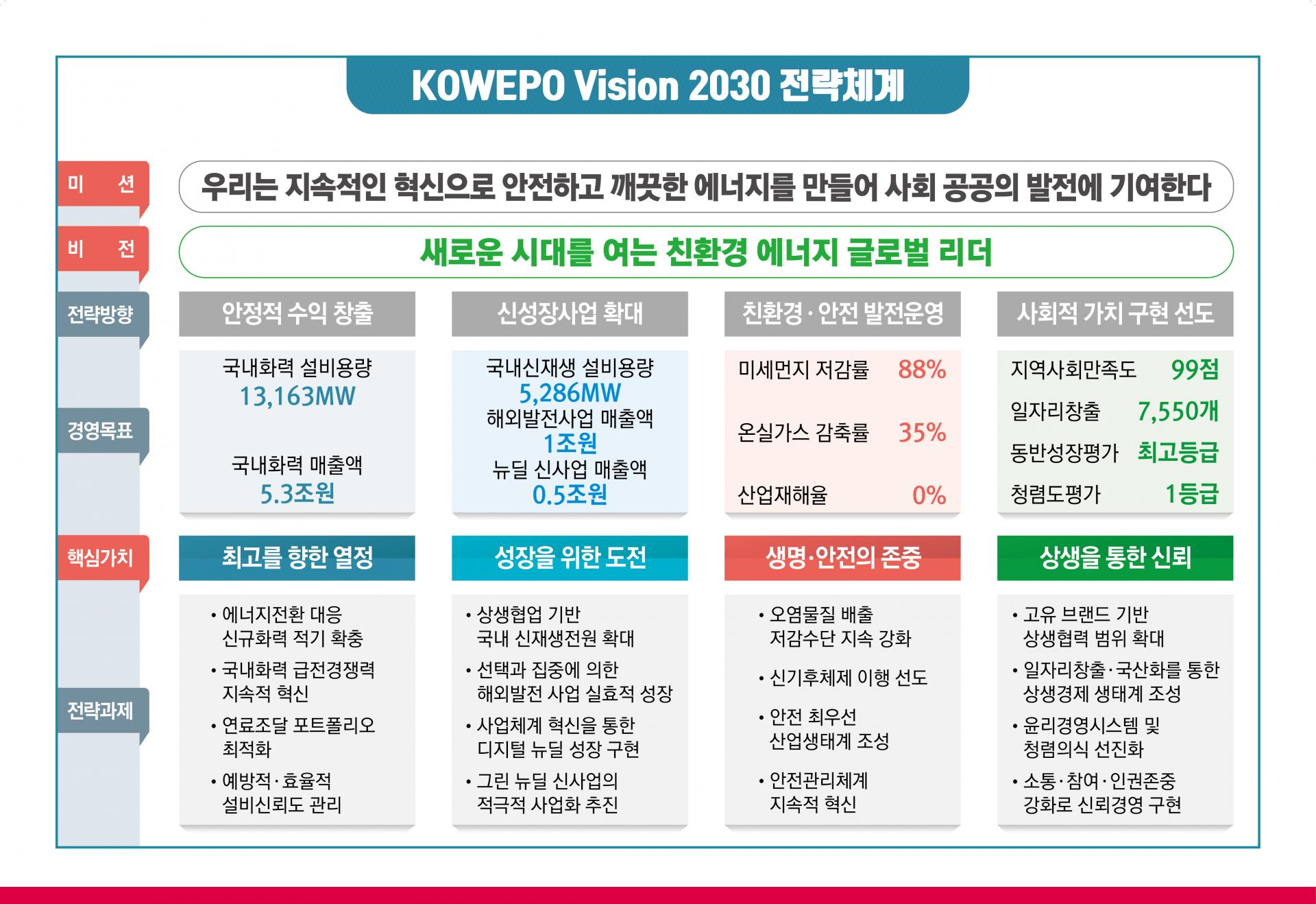 해당 그림은 한국서부발전의 Vision2030 전략체계입니다. 나름 그럴듯한 미션, 비전, 전략방향, 경영목표, 핵심가치, 전략과제 등을 제시하고는 있지만 이것만으로 ‘세계 최고의 종합에너지 기업’이 될 수 있을까 싶기는 합니다. 그리고 문제는 본인들조차도 ‘세계 최고’라는 말을 쓰고 있지는 않습니다.(자기네들이 봐도 민망한가? ;;;;;)