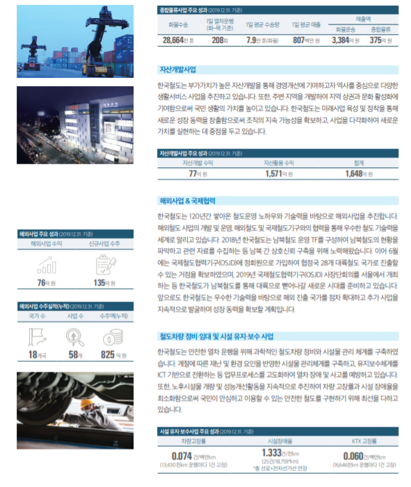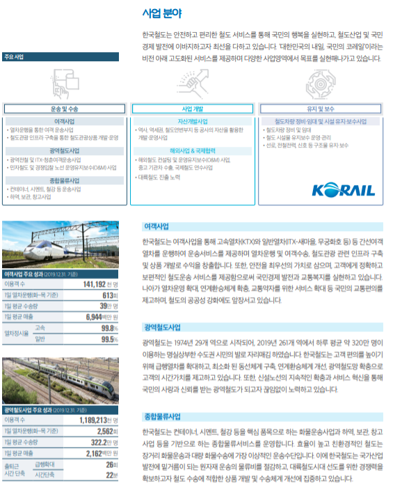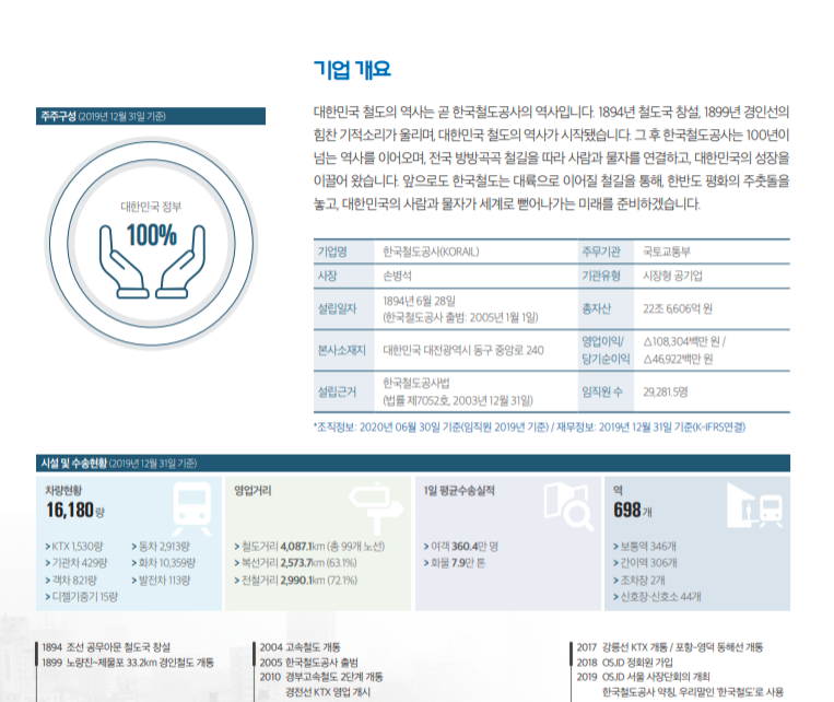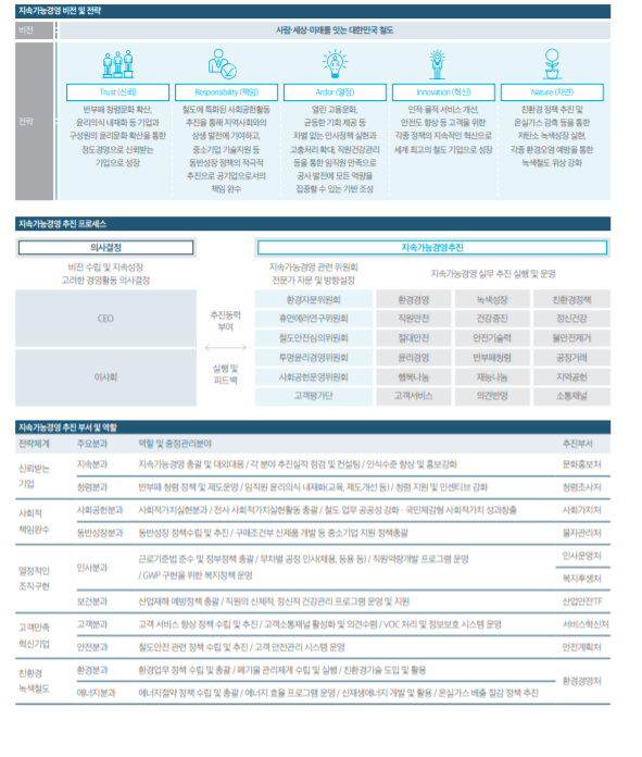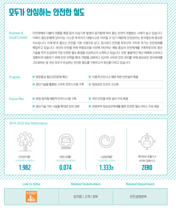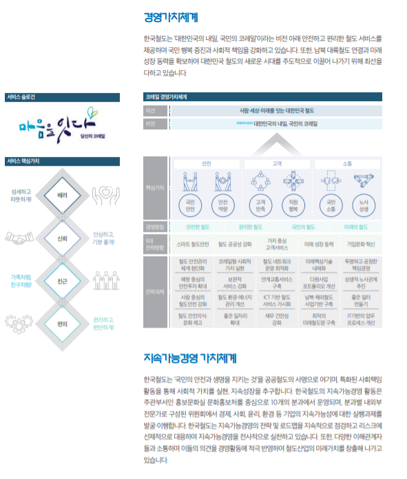 맨 밑에 코레일 지속 가능 경영 보고서 PDF 파일로 첨부하니, 참고하세요 :)