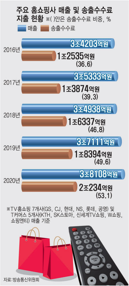 코로나 특수를 누렸던 홈쇼핑 업계가 송출 수수료 인상으로 인해 최대 실적에도 불구하고 영업이익률이 급감하는 상황에 놓였습니다.