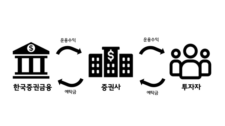 (한국증권금융은 국채증권이나 지방채증권, 금융기관이 지급보증을 한 채무증권 등 안정적인 곳에 투자한 후에 수익금을 증권사에 배분)