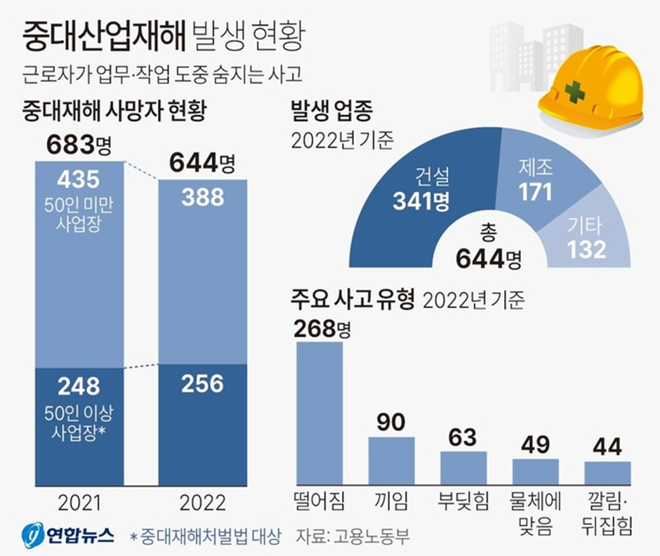 우선 전통적으로 산업재해는 건설과 제조업에 포진하여 발생하곤 합니다.