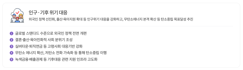 ‘미래세대 동행’을 살펴보면 실버타운이나 퇴직연금 등 고령사회 대응기반이 있는데,