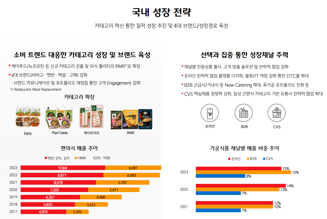 가공식품의 주력 CAT는 햇반 - 캔햄 - 만두= 국탕찌개 라고 볼 수 있으며