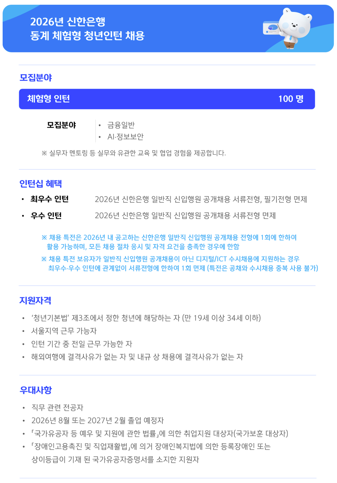 👉2026년 신한은행 동계 체험형 청년인턴 채용 지원하러 가기!