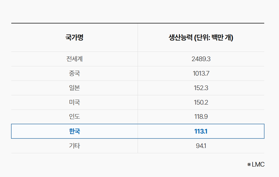 국내 타이어 업체의 국내 생산능