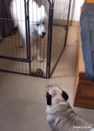 어른 개 사이를 걸어가는 어린 강아지처럼...